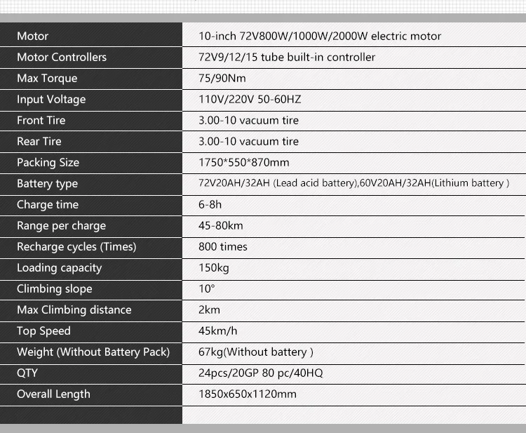 • Motor power : 500W/1000W/1500W/2000W Brushless Motor